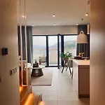 Baranowka - Komfortowe Domki I Apartamenty Z Balia, Sauna, Widokiem I Ogrodem villa has a mini-kitchen with a refrigerator, kitchenware, and a dishwasher.